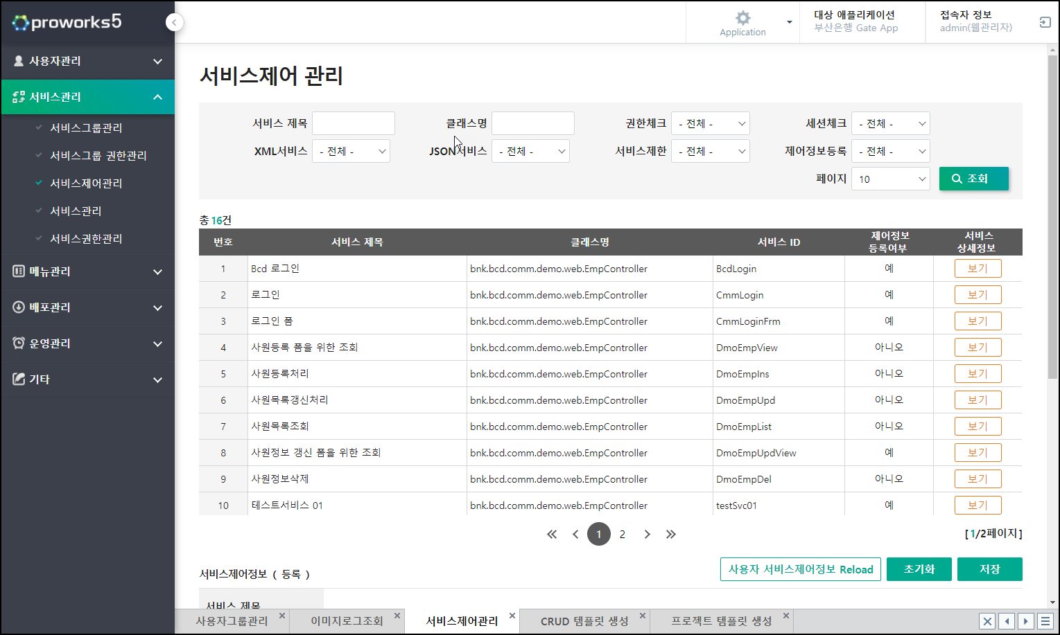ユーザーによるサービス権限管理やメニュー管理などのリアルタイム制御、イメージログ照会を通じた取引入出力などの照会、配布ノード管理でリソース配布が可能です。